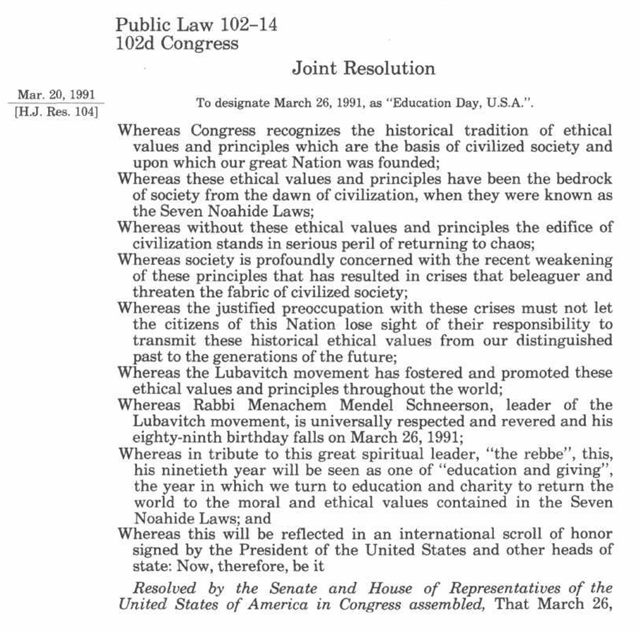 - No operative provisions mandate anything. There is no language saying “the Noahide Laws shall be enforced,” “courts must apply them,” or anything similar. The “Whereas” clauses are precatory (expressing aspirations) and have zero binding force in U.S. law.